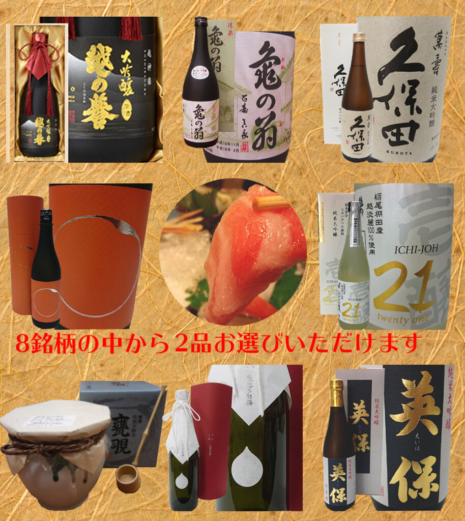 新潟県内8蔵の、各蔵の最高峰として君臨する中からお好きな2銘柄を選んでいただくものです。