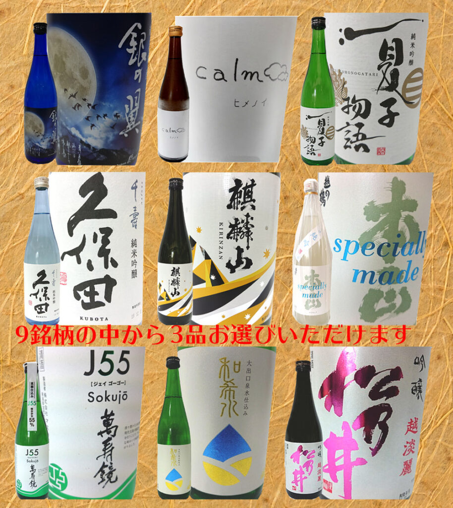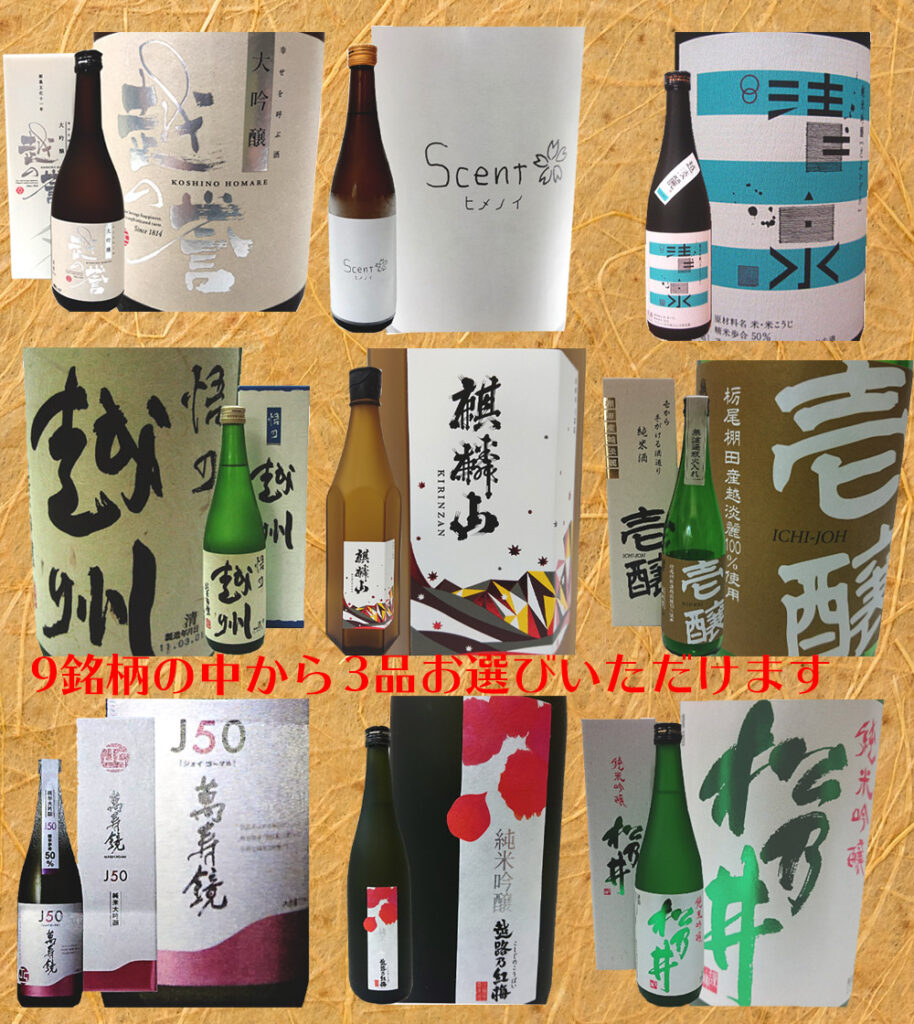 新潟県内9蔵のお買い得感のある銘柄からお好きな3銘柄を選んでいただくものです。